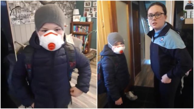 A mad scramble ensued to get to Portlaoise school Holy Family in time with James deciding to wear a mask.